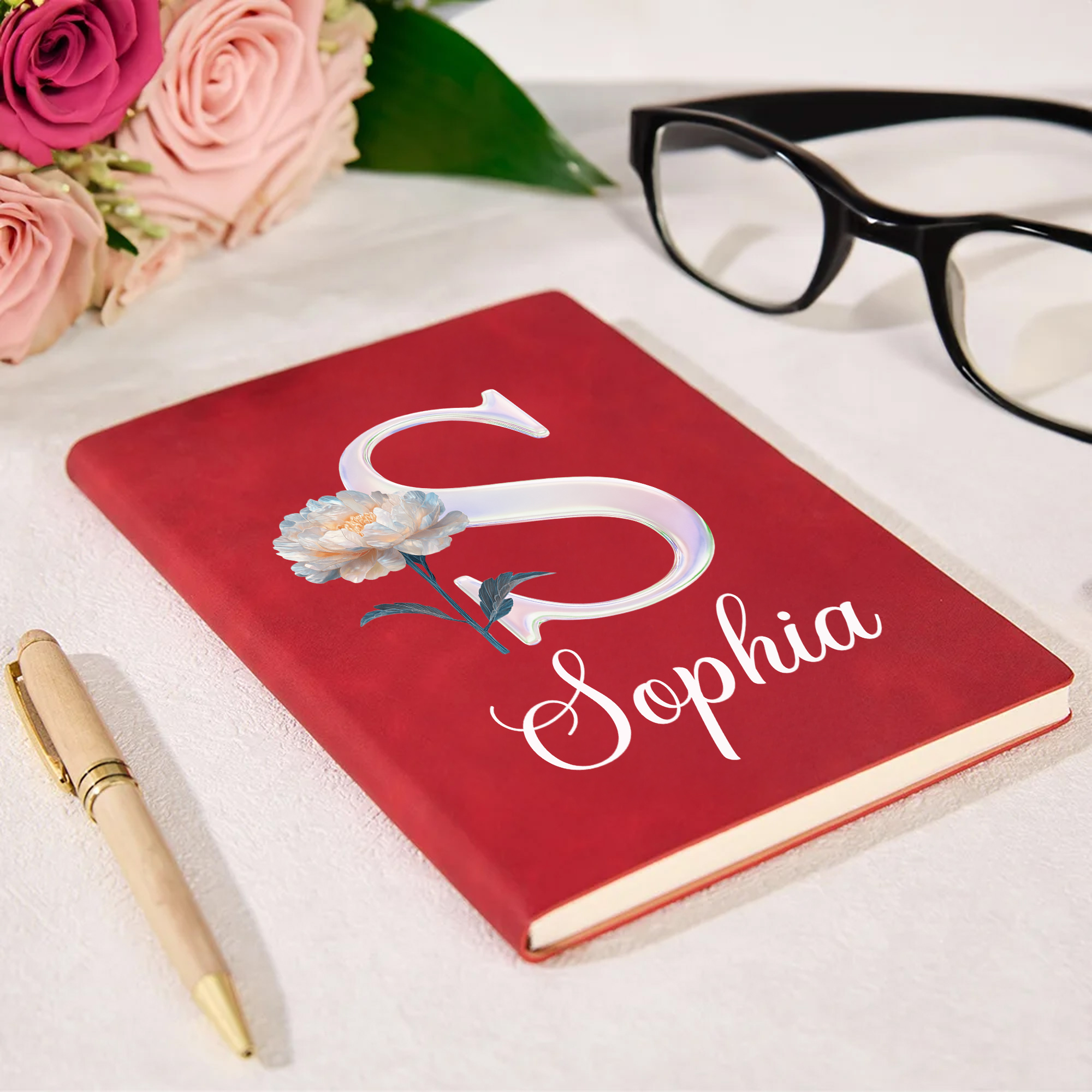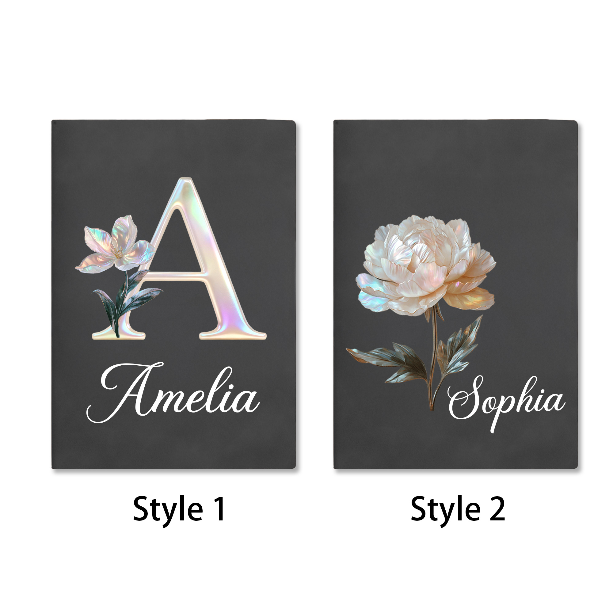Meaningful Birth Flower Design - Each notebook highlights a delicate mother-of-pearl effect birth flower paired with an optional elegant alphabet initial. The soft shimmer and clean lines give it a refined style that feels both personal and timeless.