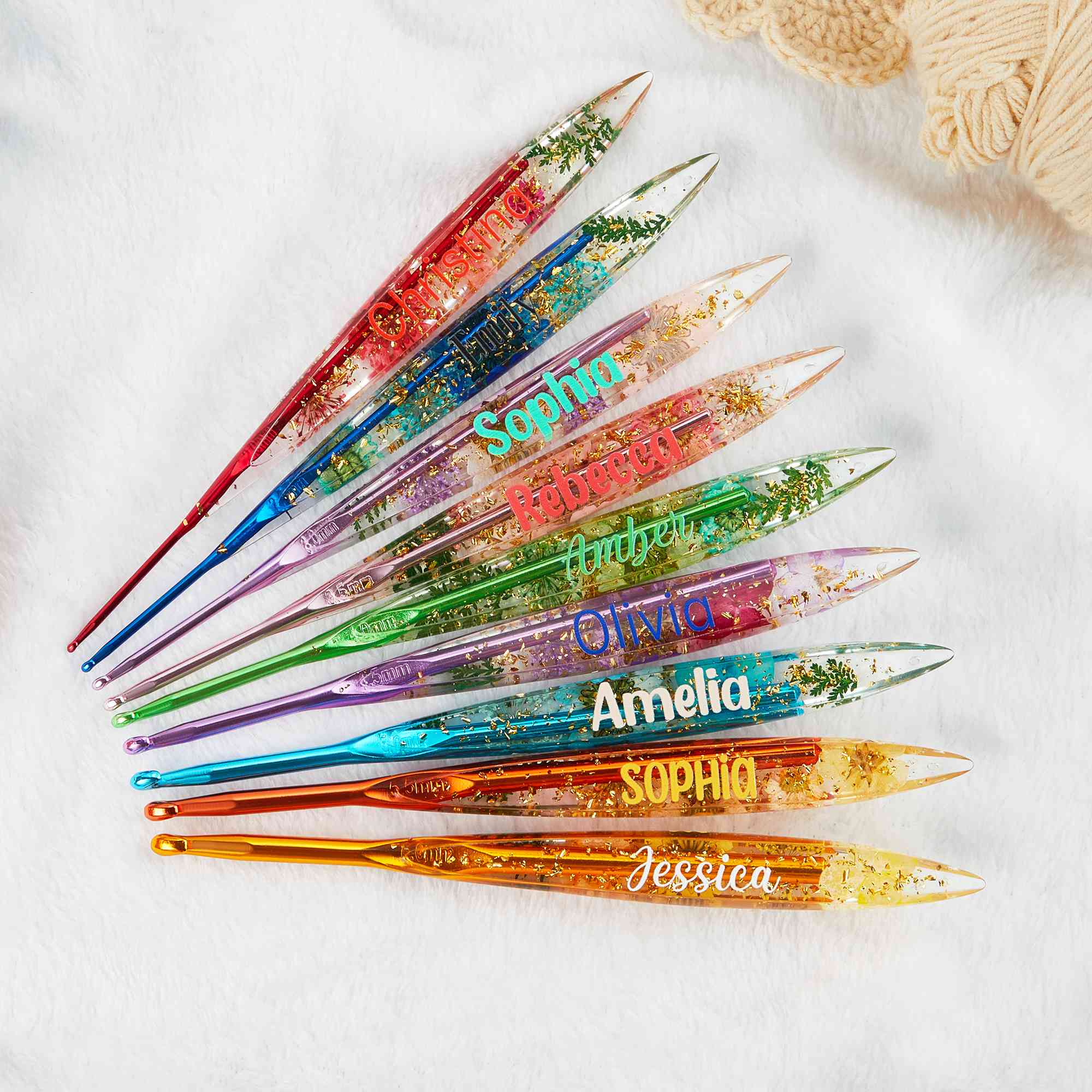 Personalized Multicolor Dried Flower Resin Crochet Hook with Name, Ergonomic Sewing Tool, Birthday/Mother's Day Gift for Mom/Grandma/Crochet Lovers