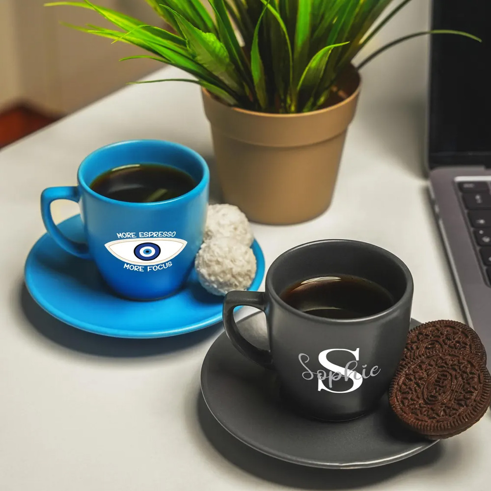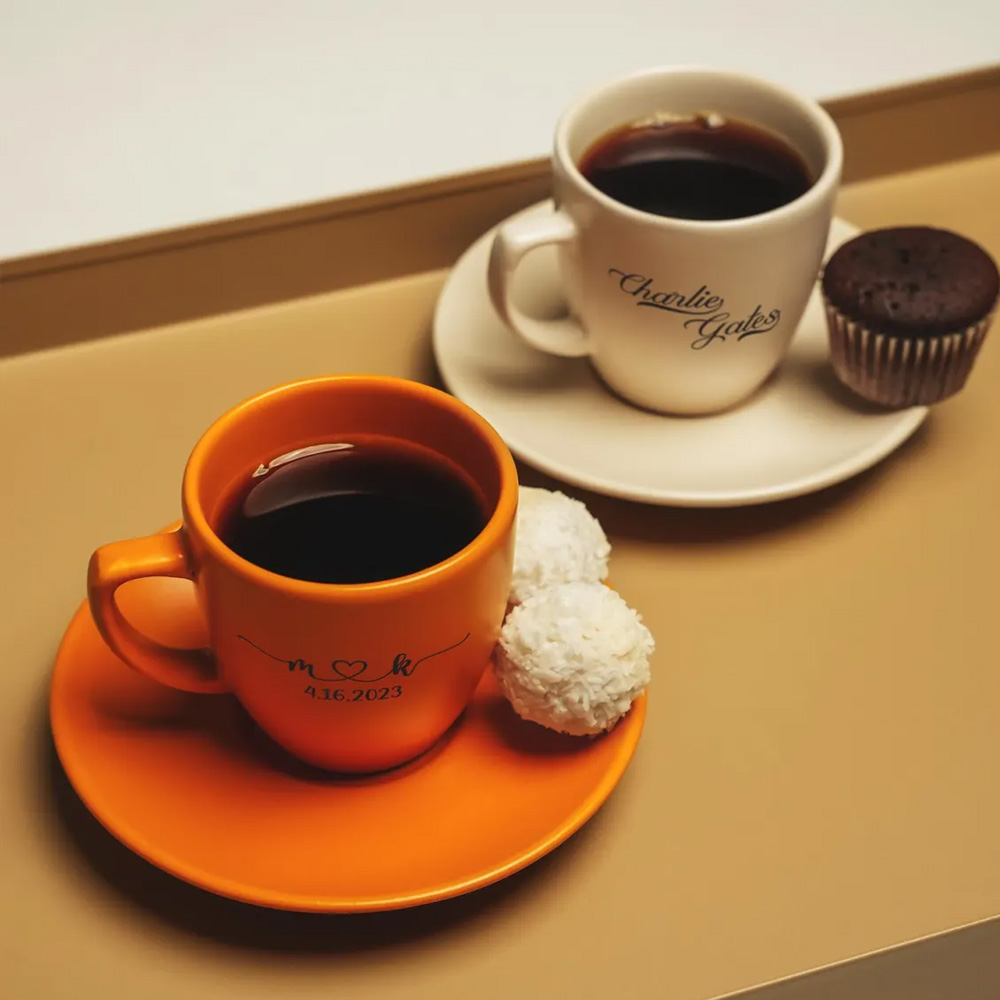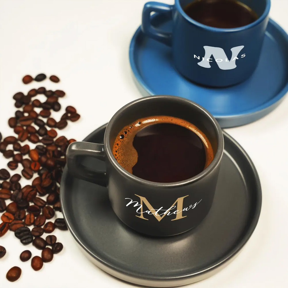 Personalized Name - Each cup can be customized with a name and initials, turning a simple espresso set into a personal keepsake. The clear lettering creates a thoughtful detail that celebrates individual taste and personal connection.