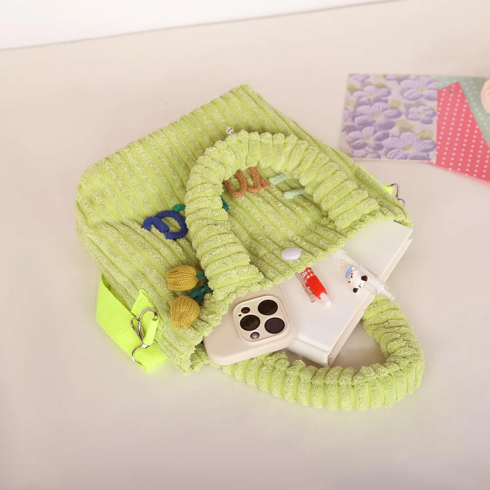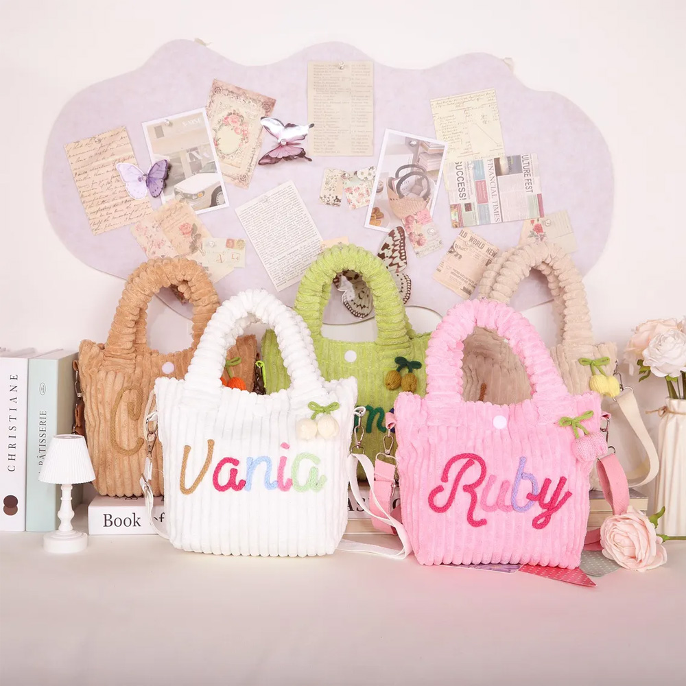 Tulip Corduroy Design - The handbag features a soft corduroy body paired with a cute tulip accent and yarn-style name detail, giving it a sweet and playful look that suits toddlers and young girls.