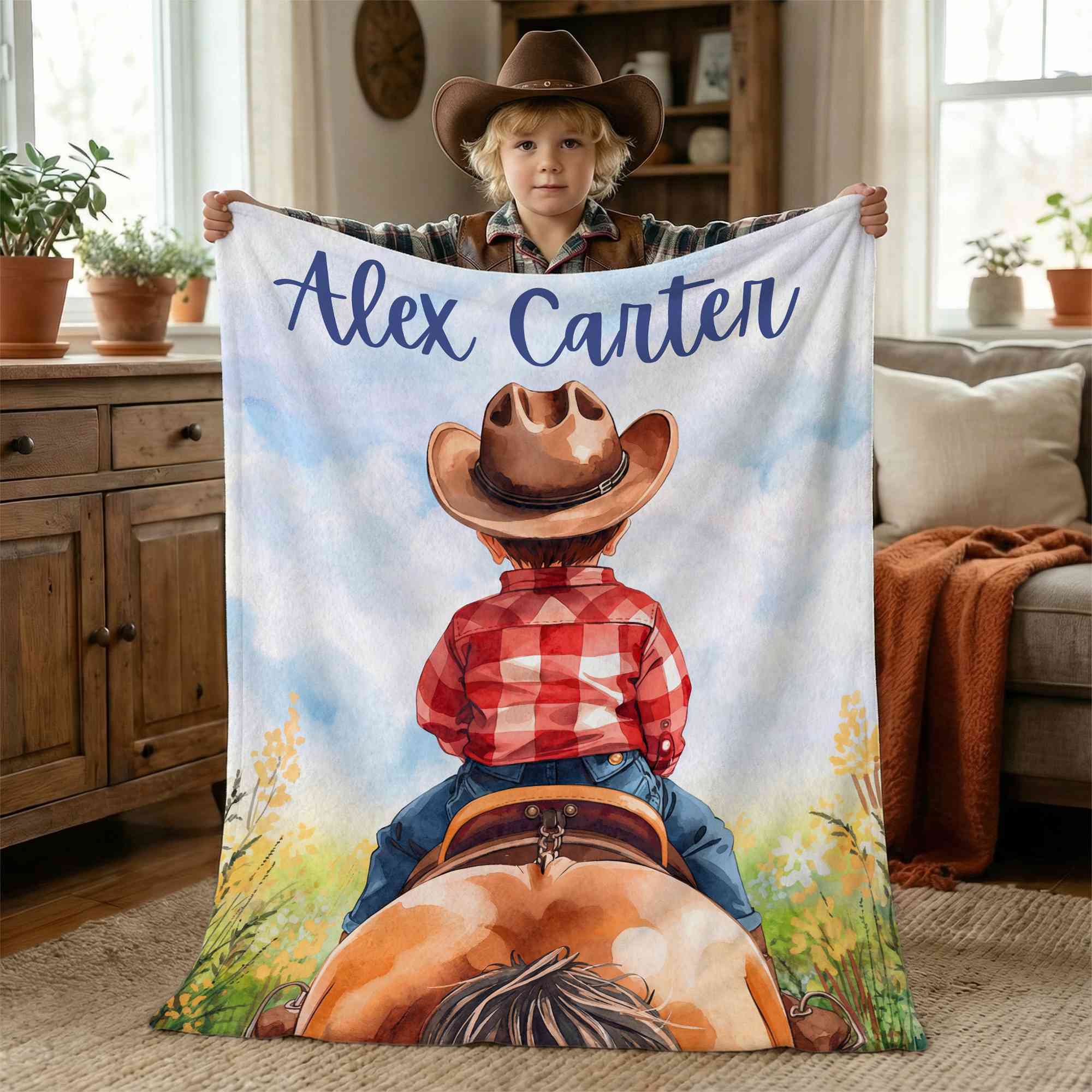 Style Personalized Watercolor Little Cowboy/Cowgirl Blanket with Name